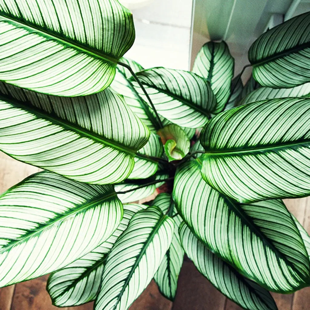 Die Korbmarante ist zwar nicht ganz einfach, aber mit etwas Gespür kann sie sich prächtig entwickeln. Besonders beliebt sind die Calathea network, Calathea white Star, Calathea lancifolia und Calathea orbifolia. Es gibt viele verschiedene Farbgebungen und Größen, besonders ihre Blätter sind ein echter Hingucker. Die Blätter sind schön gezeichnet und variieren mit bunten, feinen Streifen auf grünem Grund. Zudem befreit die Korbmarante die Luft effektiv von Schadstoffen, sie ist daher wie geschaffen für Schlaf- und Wohnräume.