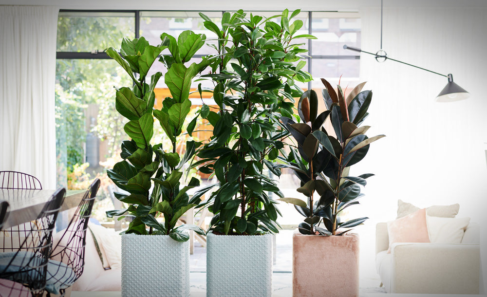 Palettenset Ficus: 6XXL Büropflanzen in Keramiktöpfen