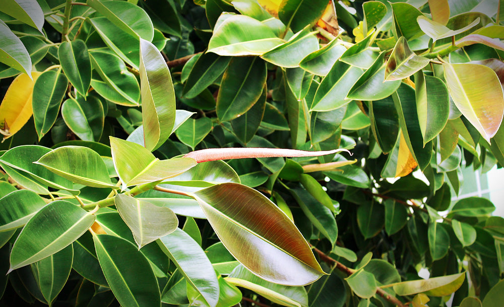 Der Gummibaum zählt zu den Zimmerpflanzenklassikern und erlebt sein Comeback. Die Pflanzenart selbst hat große, glänzend-dunkelgrüne Blätter, bei den zahllosen Sorten gibt es verschiedene Variationen. Bei einem ausreichend hellem Standort bildet er eine breite, verzweigte Krone. Sind die Lichtverhältnisse eher ungünstig, verzweigt sich der Mitteltrieb oft nur spärlich oder gar nicht. Daher sollte der Standort hell bis halb-schattigen, warm und ohne Zugluft sein.