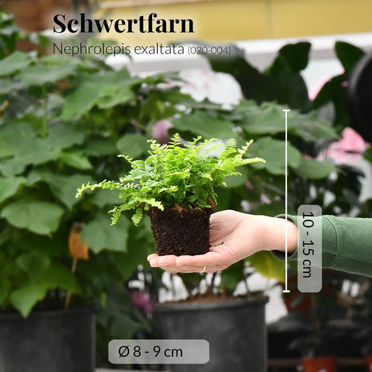 Der Schwertfarn ist immergrün, ausdauernd und macht sich in Hängeampeln oder in Hochgestellkübeln besonders gut. Durch seine bogig überhängenden, schmuckvollen Fiederblättern ist er ein echter Hingucker. Je nach Sorte können die Blätter auch gedreht, gewellt oder krausig sein. Der Ballen sollte gleichmäßig feucht gehalten und Staunässe vermieden werden.