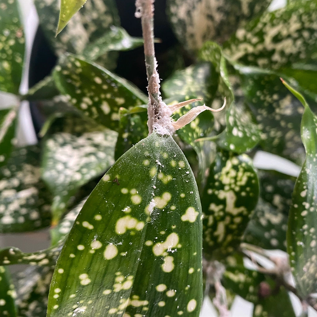 Wollläuse sind kleine, saugende Insekten, die sich oft als weiße, flauschige oder klebrige Ablagerungen auf den Blättern und Stielen deiner Pflanzen zeigen. Manchmal erscheinen sie auch wie kleine braune oder graue Punkte. Diese Schädlinge ernähren sich von Pflanzensaft und können schwere Schäden verursachen, indem sie das Wachstum hemmen und die Pflanze schwächen. Sie produzieren oft klebrigen Honigtau, der zu Schimmelbildung führen kann. Wollläuse bevorzugen warme und trockene Bedingungen und können sich schnell vermehren, besonders wenn sie nicht frühzeitig bekämpft werden.