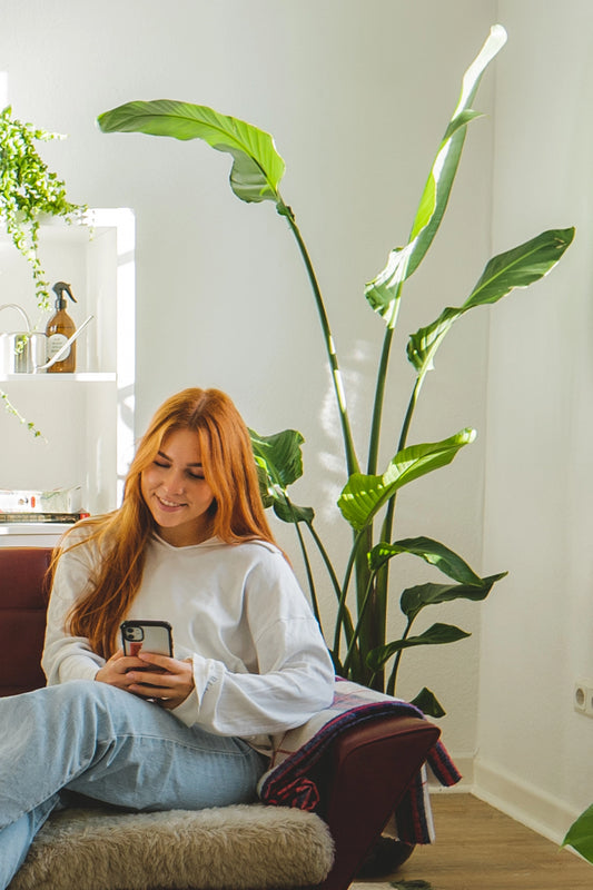 Überlege dir zuerst, wo du deine Pflanze hinstellen möchtest und prüfe dann wie viel Licht an diesem Standort vorhanden ist. Liegt der Standort der Pflanze direkt am Fenster, was zeitweise direkte Sonne hat, dann solltest du auf jeden Fall eine robuste Zimmerpflanze aussuchen. Große Strelitzien eignen sich da besonders gut, denn sie vertragen genau wie Bananen oder andere tropische Palmen direkte Sonne. Im Sommer sollten dagegen Pflanzen wie Ficus, Dracaena, Pachira oder Calathea nicht direkt am Fenster stehen, denn sie bekommen dort einen Sonnenbrand und unschöne braune Flecken. Im Winter ist die Lage am Fenster entspannter. Große Pflanzen im Wohnzimmer sollten dann eher ans Licht rücken, denn die dunklen Ecken im Raum bekommen dann fast keine Sonnenstrahlen mehr ab. Zum Glück gibt es aber auch großwachsende Indoorpflanzen, die auch im Schatten stehen können. Dracaena und Feigenbaum kommen damit ganz gut klar und auch das Einblatt macht hier einiges mit. Zeigt deine Pflanze aber hängende Blätter oder braune Stellen, dann kann dies ein Zeichen sein, dass der schönen Zimmerpflanze der Standort nicht gefällt. Teste dann am besten einen Ortswechsel.
