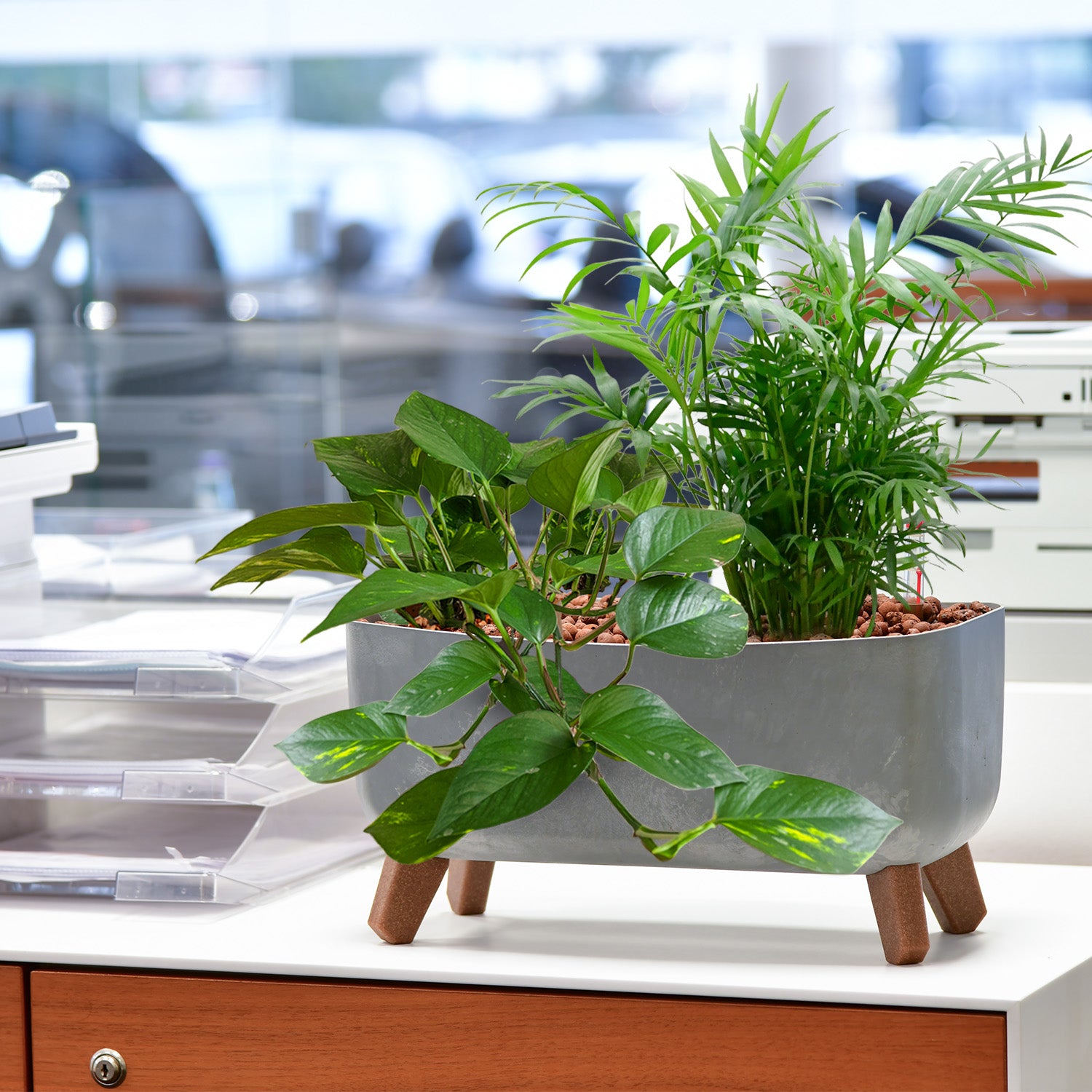 Palettenset Classico-Betonoptik: 16 Büropflanzen in Hydrokultur