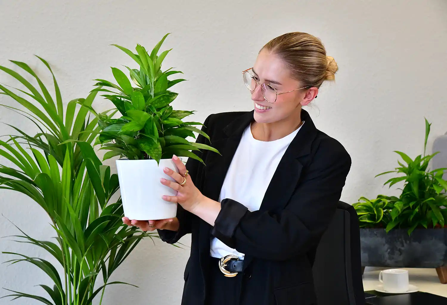 Mit über 20 Jahren Pflanzenerfahrung hat sie besonders viel Pflanzenwissen udn weiß genau, welche Pflanzen in euer Büro passen.