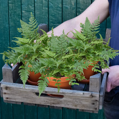 3er Box immergrüner Balkonfarn