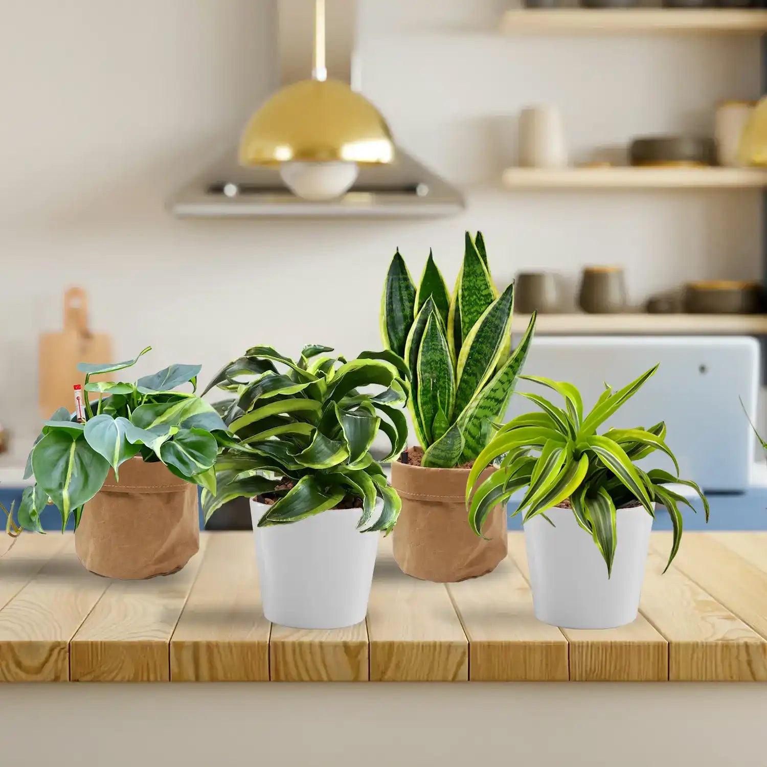 Die vier unterschiedlichen Pflanzen bringen mit ihrer grün- gelben Blattfärbung frische in deine Wohnung und sind absolut pflegeleicht und langlebig. Denn mit dem praktischen Wasserstandsanzeiger der Hydropflanze hast du das Gießen sehr einfach.