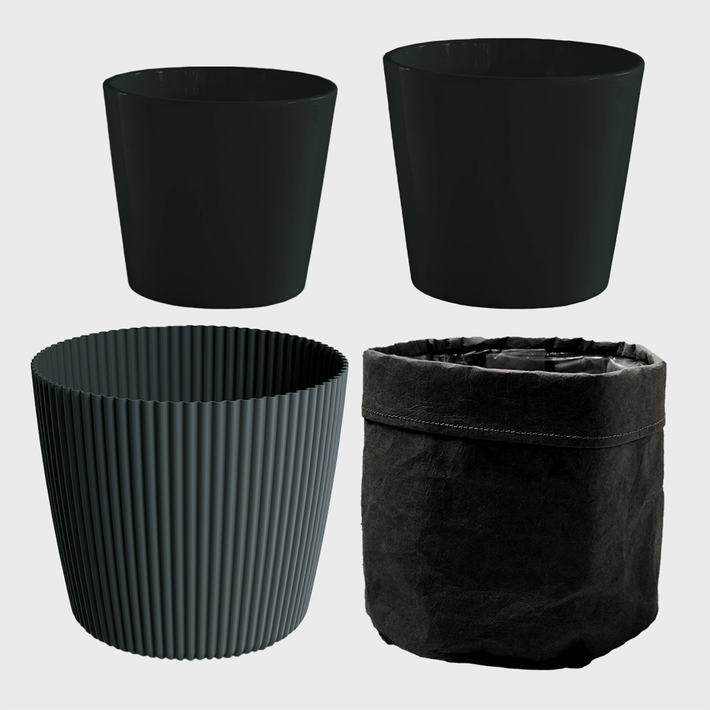 Dieses trendige Übertopf-Set haben wir dir passend zur 4er Pflanzenbox mit 2 großen, 1 mittleren und 1 kleinen Pflanze zusammengestellt. Die Töpfe sind eine Mischung aus Keramik, recyceltem Kunststoff und einer stylischen Papiertüte. Damit sie überschüssiges Gießwasser auffangen kann, ist sie mit einer Plastiktüte ausgestattet. Beachte jedoch, dass nie dauerhaft Wasser in der Sizo Bag stehen sollte, da sie nie 100% wasserdicht ist. Einfach mit bestellen und deine neuen Pflanzen kinderleicht in deiner Wohnung dekorieren. Erhältlich in verschiedenen Farben.