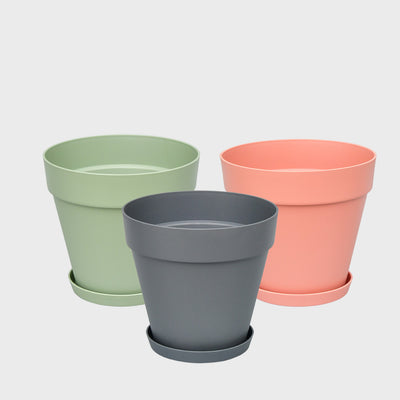 Hergestellt ist der Topf größtenteils aus recyceltem Kunststoff, das UV- und frostbeständig ist. Das leichte Material macht es dir leicht, deine Pflanze zu verschieben, wenn du das möchtest oder es Zeit ist, dass deine Pflanzen ins Sommer-/Winterquartier ziehen.