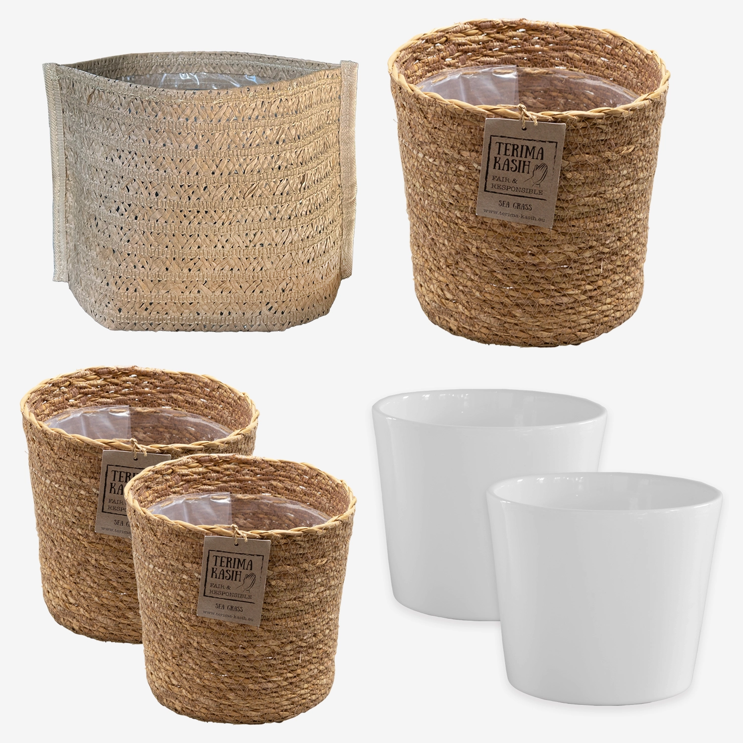 Dieses trendige Übertopf-Set passt perfekt zur 6er Pflanzenbox. Die Töpfe sind eine Mischung aus Keramik, Seegrasgeflecht und trendigen Pflanzsäcken mit Innenfolie. Einfach mit bestellen und deine neuen Pflanzen kinderleicht in deiner Wohnung dekorieren. Erhältlich in verschiedenen Farben.