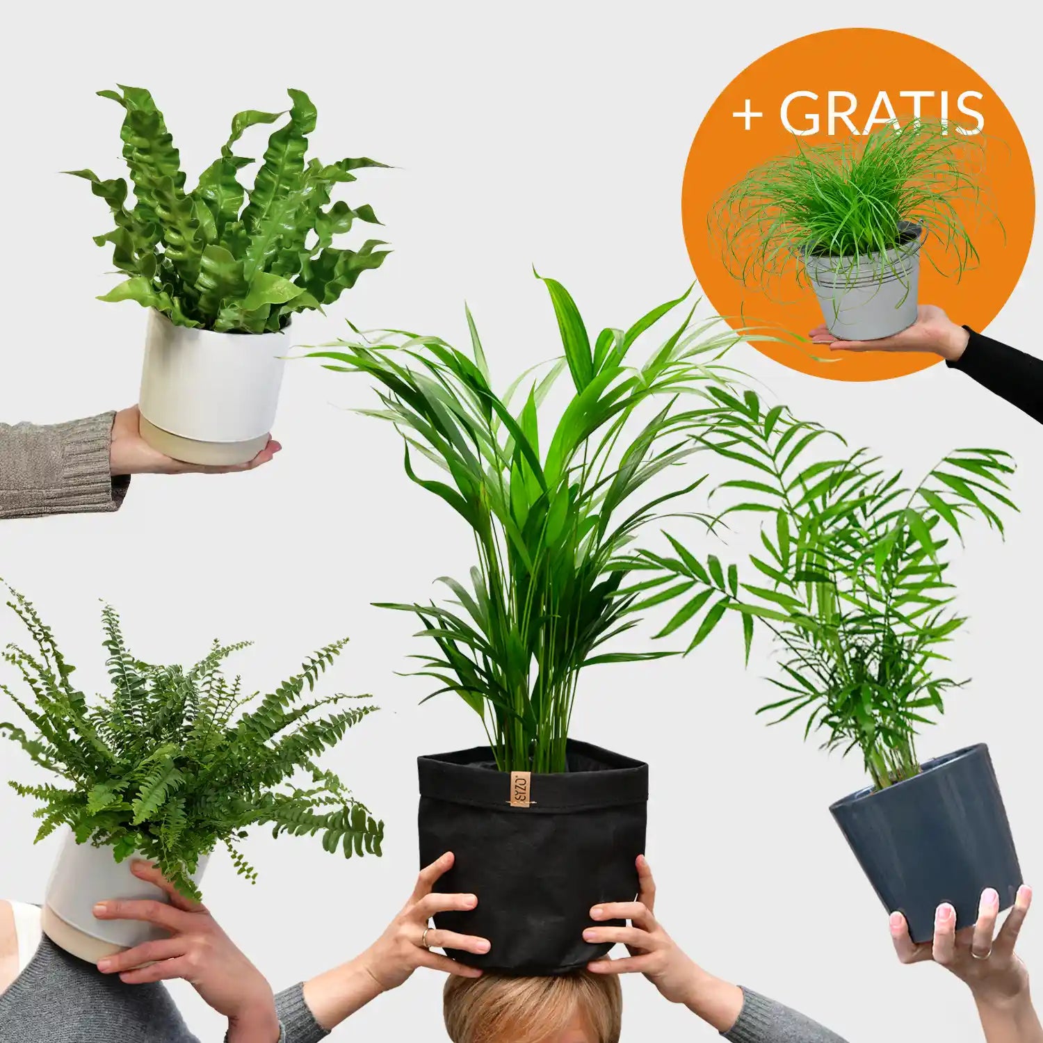 In diesem Paket bekommst du zu einem unschlagbaren Preis vier unser beliebtesten tierfreundlichen Pflanzen: Goldfruchtpalme, Nestfarn, Bergpalme und Schwertfarn. Greif zu und bestelle dir gleich das passende Topfset zu den Pflanzenlieblingen dazu.