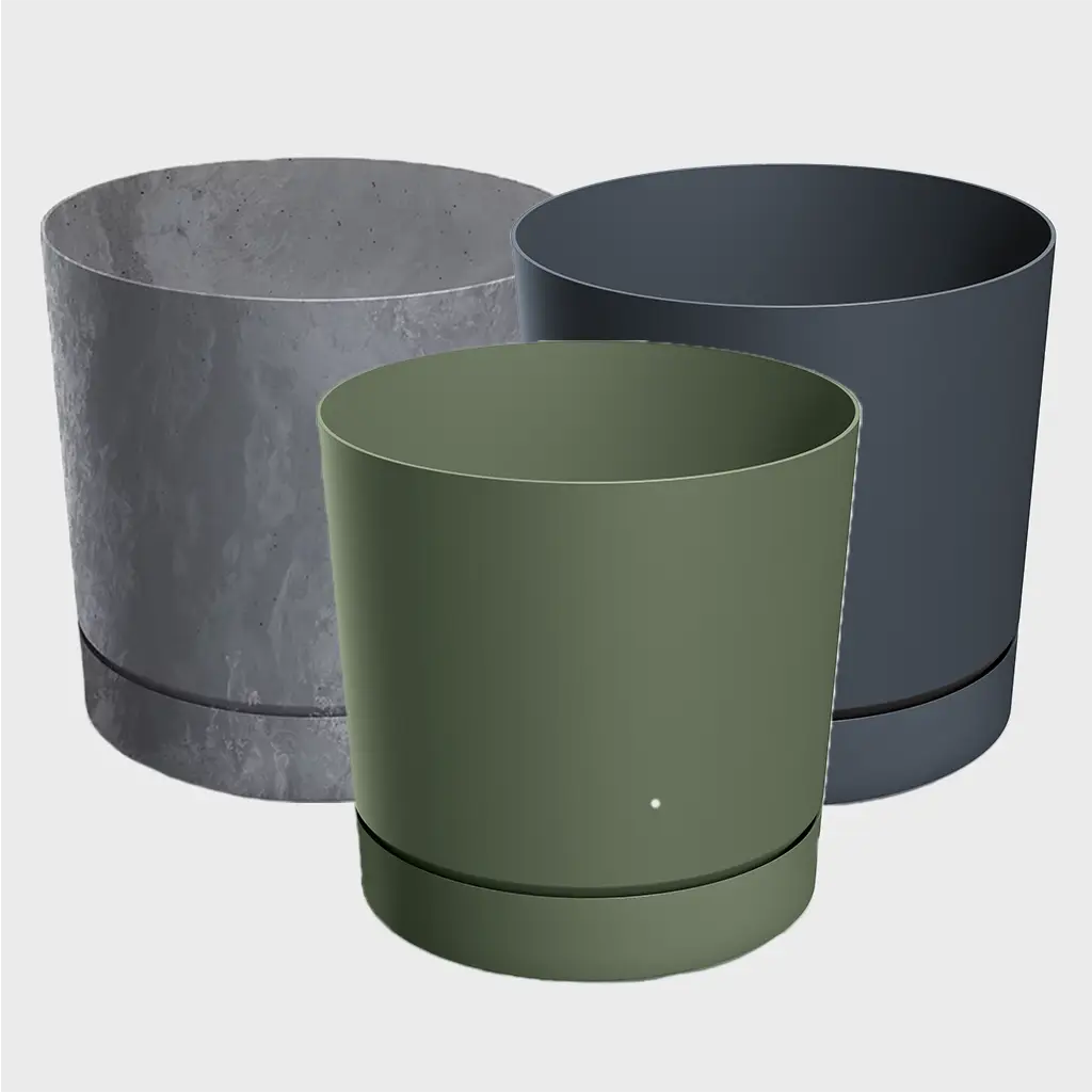 Hergestellt ist der Topf größtenteils aus recyceltem Kunststoff, das UV- und frostbeständig ist. Das leichte Material macht es dir leicht, deine Pflanze zu verschieben, wenn du das möchtest oder es Zeit ist, dass deine Pflanzen ins Sommer-/Winterquartier ziehen.