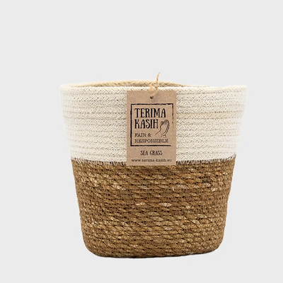 Dieser Korb aus Seegrasgeflecht passt gut zu einer natürlichen Einrichtung und bringt das Grün deiner Pflanze optimal hervor. Der weiße Rand macht den Korb sehr modern und zu einem Highlight in einer Maritimen oder Boho orientierten Raumdeko. Die Körbe tragen das Label Terima Kasih, bei dem auf die faire und verantwortungsvolle Herstellung der Körbe geachtet wird.