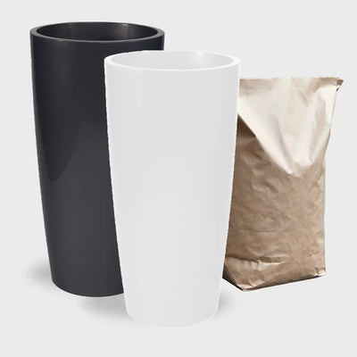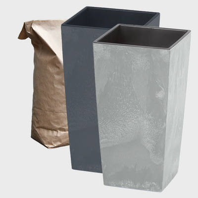 Hergestellt ist das Gefäß aus recyceltem Kunststoff, sodass die Gefäße sehr leicht, aber gleichzeitig auch robust sind. In das Gefäß ist ein Einsatz aus Kunststoff eingelassen, in den du deine Pflanze stellt. Sie fasst 49L und verhindert, dass du die Pflanze auf den Boden des Gefäßes platziert.