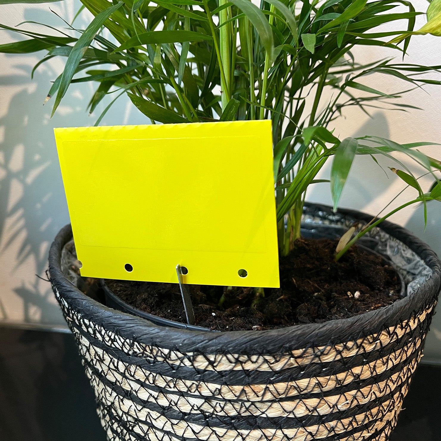 Du hast den Verdacht, dass deine Pflanze mit Trauermücken befallen ist? Dann sind Gelbtafeln ein hilfreiches Mittel, um Schädlinge zu identifizieren und zu eliminieren. Die gelbe Farbe zieht die Schädlinge an, die dann an der mit Leim beschmierten Oberfläche hängen bleiben. Sie Fangen besonders die Schädlinge: Trauermücken, Weiße Fliege, Blattläuse und Minifliegen.
