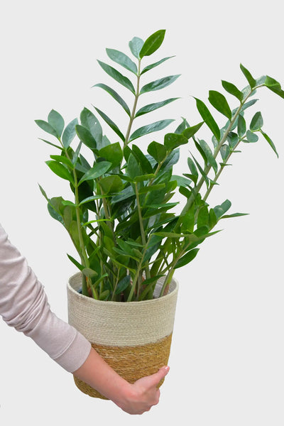 Mit dem fast 1 Meter großen Zamioculcas bekommst du einen Allrounder für deine Raumdeko. Die Pflanze ist wirklich pflegeleicht, muss nicht viel gegossen werden und kann am Fenster als auch etwas dunkler im Raum stehen. Sie ist ideal fürs Büro oder dein Ladenlokal geeignet, denn sie verzeiht fast alles.