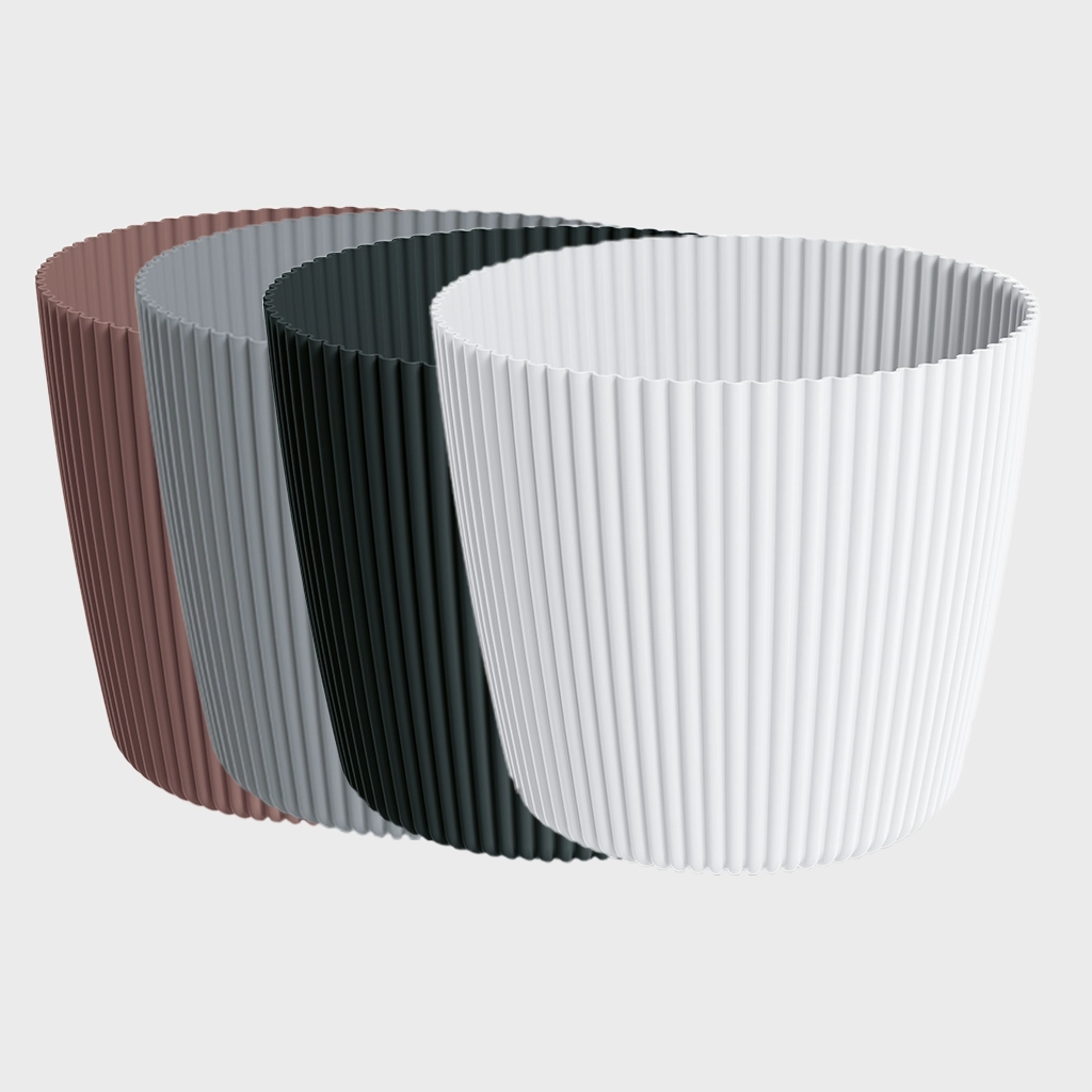 Modern und minimalistisch - das strahlt der Übertopf Milly für Zimmer- und Balkonpflanzen aus. Die leicht konische Form in Kombination mit den dezent, gerillten Oberfläche verleiht dem Topf eine attraktive Optik. Vollkommen wasserdicht ist er perfekt für deine Zimmerpflanzen geeignet, um sie perfekt in Szene zu setzen. Magst du es schlicht? Dann sind die Farbe Weiß und Schwarz immer eine gute Wahl. Wer aber mit dem Übertopf einen Farbklecks in die Dekoration bringen möchte, trifft mit der Trendfarbe altrosa die richtige Wahl.