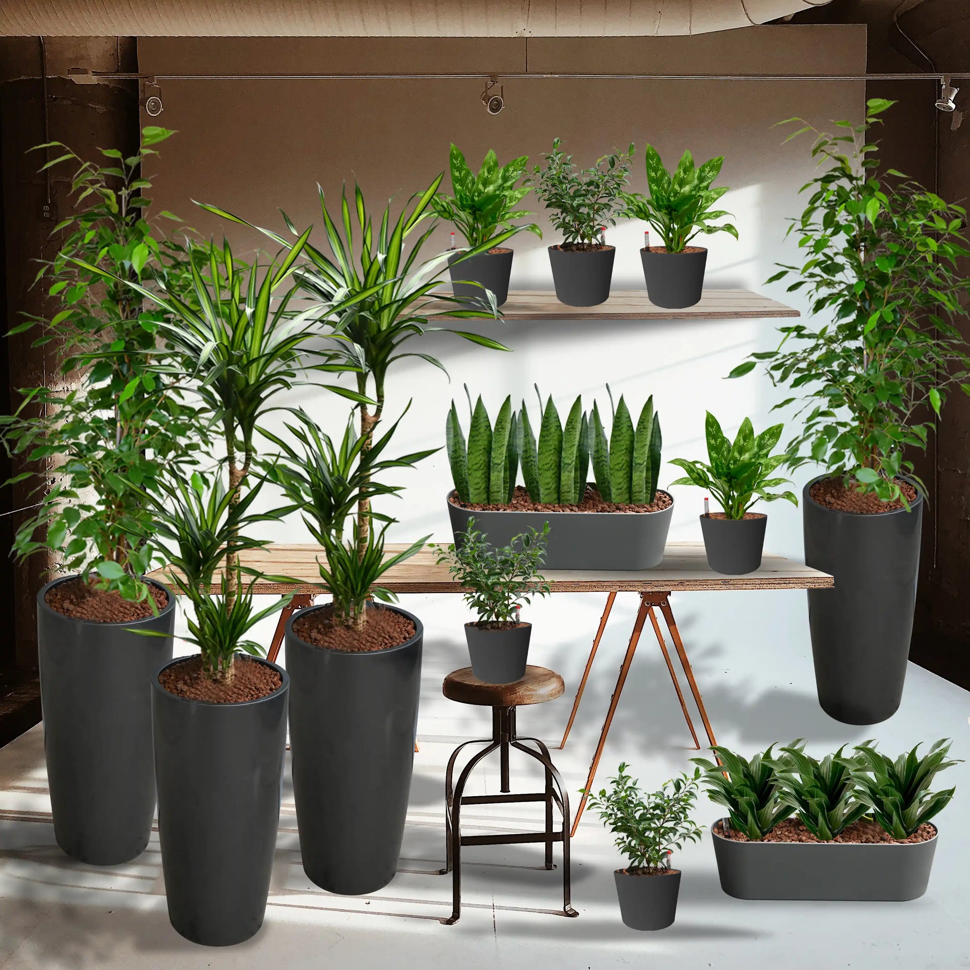 Palettenset Classico : 16 Büropflanzen in Hydrokultur