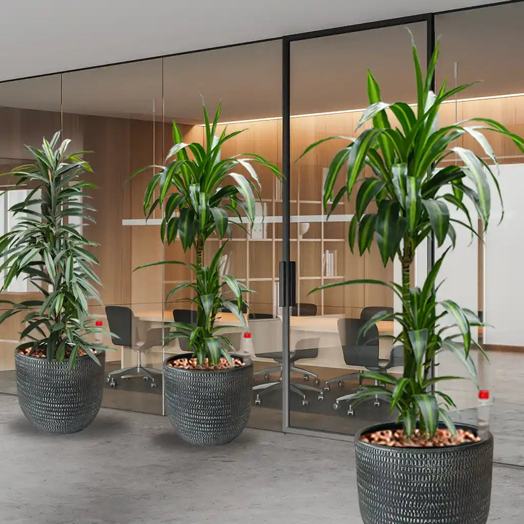 Diese 5 XXL Pflanzen aus klassischem Ficus und Drachenbaum sind bewährte und langlebige Pflanzen für die Bürobegrünung. In Keramiktöpfen sind sie ein echter Klassiker und in Hydrokultur mit Gießanzeiger noch dazu besonders pflegeleicht.
