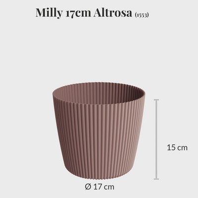 Modern und minimalistisch - das strahlt der Übertopf Milly für Zimmer- und Balkonpflanzen aus. Die leicht konische Form in Kombination mit den dezent, gerillten Oberfläche verleiht dem Topf eine attraktive Optik. Vollkommen wasserdicht ist er perfekt für deine Zimmerpflanzen geeignet, um sie perfekt in Szene zu setzen. Magst du es schlicht? Dann sind die Farbe Weiß und Schwarz immer eine gute Wahl. Wer aber mit dem Übertopf einen Farbklecks in die Dekoration bringen möchte, trifft mit der Trendfarbe altrosa die richtige Wahl.