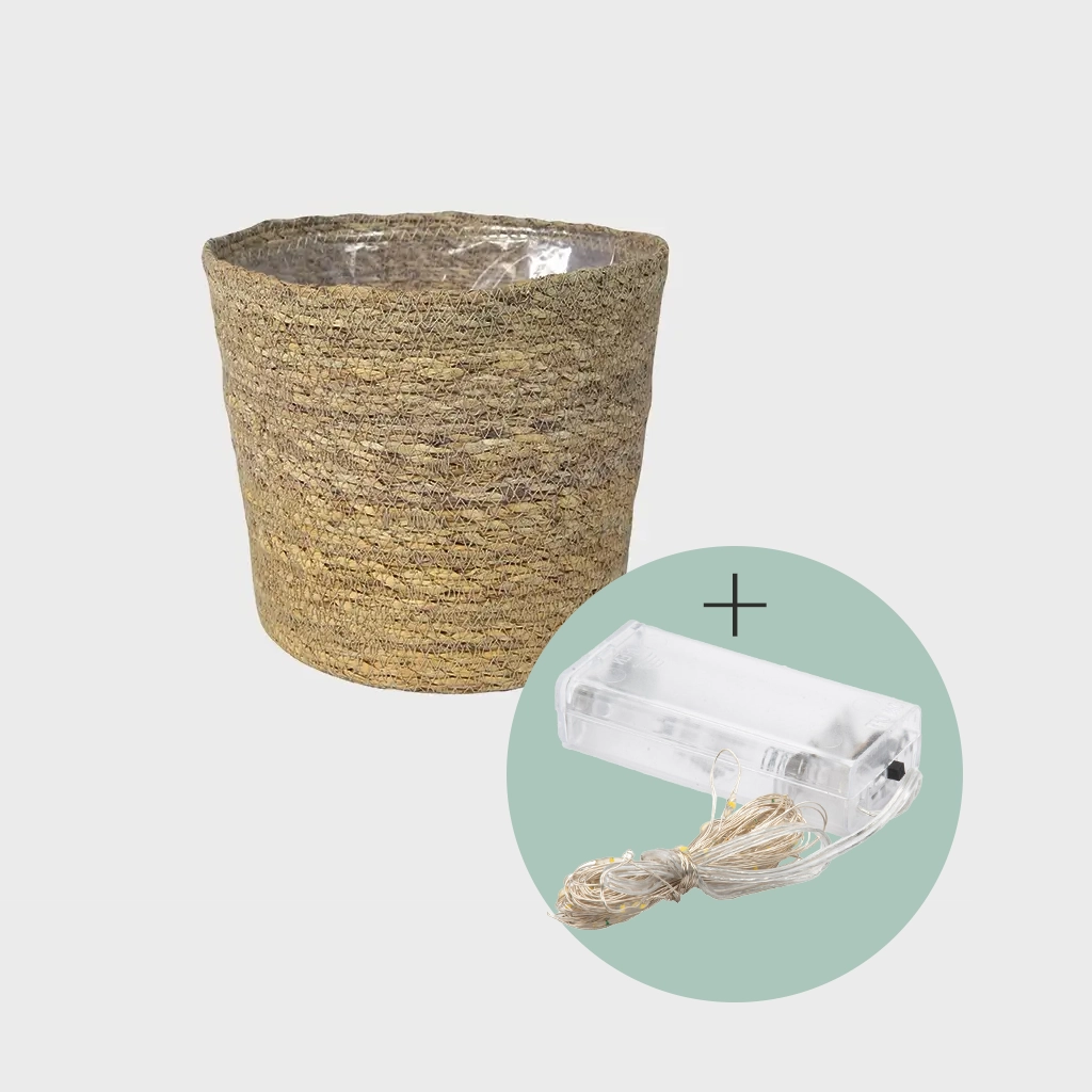 Der Seegraskorb Natur 17cm ist handgeflochten und mit einer Kunststoffauskleidung versehen. Er ist ideal geeignet für kleine Zimmerpflanzen im Indoor Bereich, die in einem Pflanztopf von 13-15cm kommen. Zusammen mit der Lichterkette ist er perfekt geeignet, um deine Pflanze weihnachtlich zu schmücken.