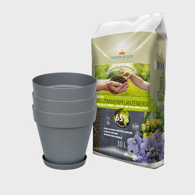 3er Set Elho Loft Pflanzkübel mit Untersetzer 20cm mit Erde