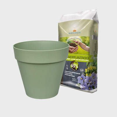 Der Pflanzkübel für deinen Balkon, Terrasse oder Garten ist ausgestattet mit einem Wasserreservoir, der dir die Pflege deiner schönen Blumen erleichtert. Mit dem passenden 10L Erdesack aus hochwertiger und torffreier Erde lässt sich das Gefäß perfekt für eine Balkonpflanzung befüllen.