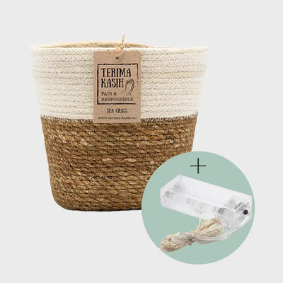 Der Seegraskorb Natur 19cm ist handgeflochten und mit einer Kunststoffauskleidung versehen. Er ist ideal geeignet für kleine Zimmerpflanzen im Indoor Bereich, die in einem Pflanztopf von 16-17cm kommen. Zusammen mit der Lichterkette ist er perfekt geeignet, um deine Pflanze weihnachtlich zu schmücken.