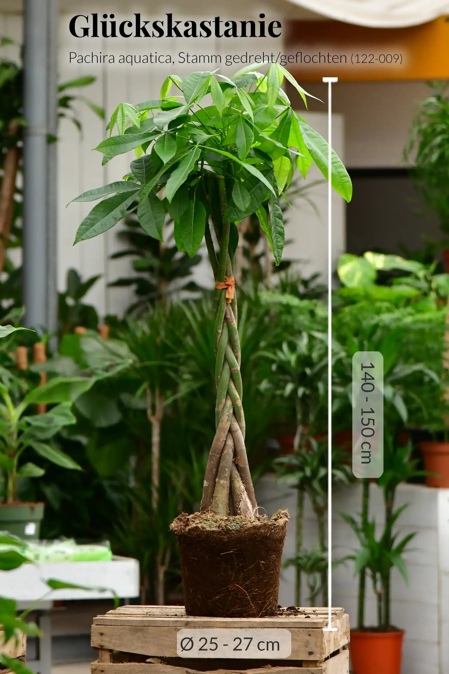 1 x Pachira aquatica, Stamm gedreht/ geflochten Topf: 27cm, Höhe: 140-150cm