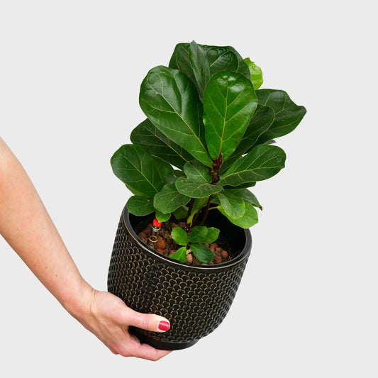 Damit sich deine Geigenfeige rundum wohlfühlt, ist ein heller Platz mit indirektem Licht ideal. Besonders gut macht sie sich im Wohnzimmer, Schlafzimmer oder Büro – hier sorgt sie nicht nur für eine stilvolle Atmosphäre, sondern trägt auch zu einem besseren Raumklima bei. Ein Standort in der Nähe eines Ost- oder Westfensters ist perfekt, die dicken Blätter vertragen zwar auch etwas Mittagssonne, sollten aber auch nicht zu viel davon abbekommen. Vermeide außerdem Zugluft, damit die Blätter gesund bleiben und nicht abgeworfen werden.